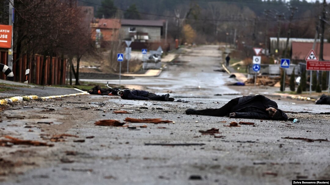 Тіла беззбройних українців, яких, за розповідями очевидців, вбили солдати російської армії, Буча, Київська область, 2 квітня 2022 року